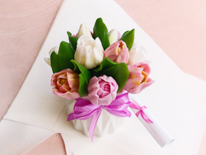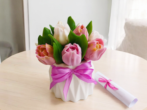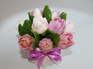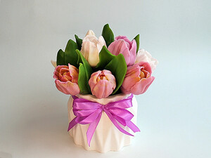! Букет из мыла "Тюльпаны Барселона", в гипсовом кашпо
