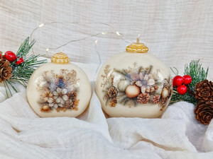 • Набор включает две свечи Шар малый и одна Шар большой + ароматическое саше, декоративный декор и открытка..