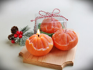 ! Свеча "Мандарин полуочищенный" в подарочной упаковке.