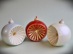 Глянцевая свеча в форме ёлочной игрушки из СССР Шар-прожектор большой. В подарочной упаковке.