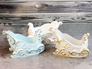 Сани выполнены из высокопрочного гипса, грунтовка, краски для гипса, лак для гипса жаропрочный.