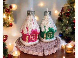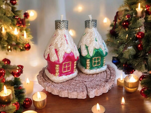 Свеча Зимний Домик по мотивам Ёлочных игрушек из СССР с зеркальным эффектом.