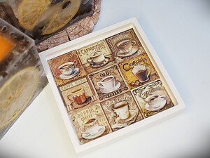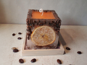 ароматная декоративная свеча на основе очищенного парафина с натуральными добавками. Её композиция сочетает в себе аромат свежесмолотого кофе и цитрусовую свежесть апельсина, создавая тёплую, бодрящую атмосферу.